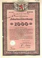 Anleihe der Stadt Wuppertal 1000 DM, 1953